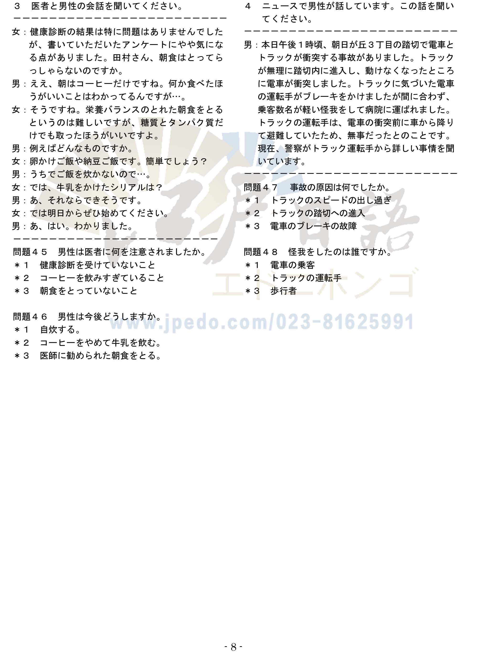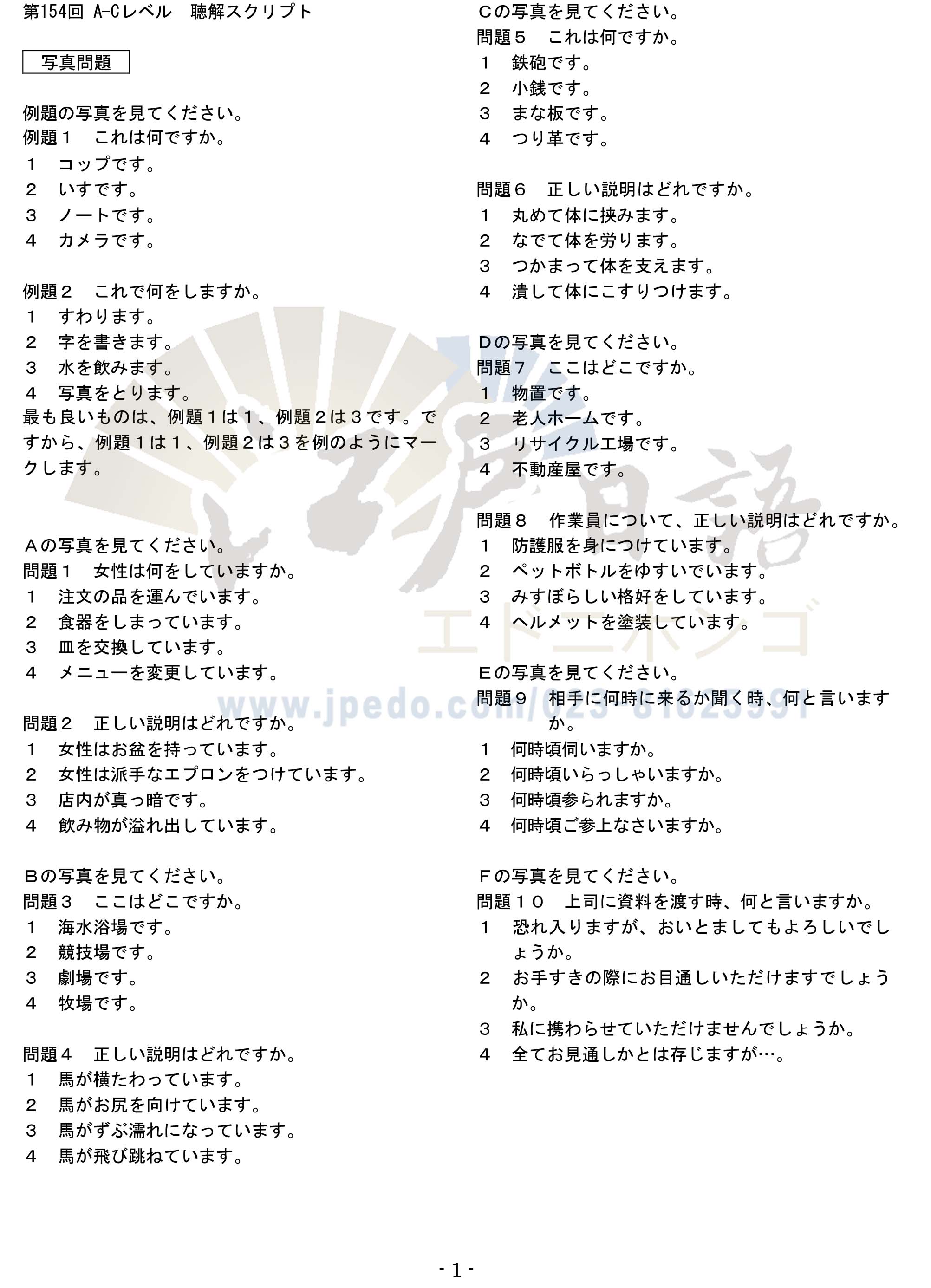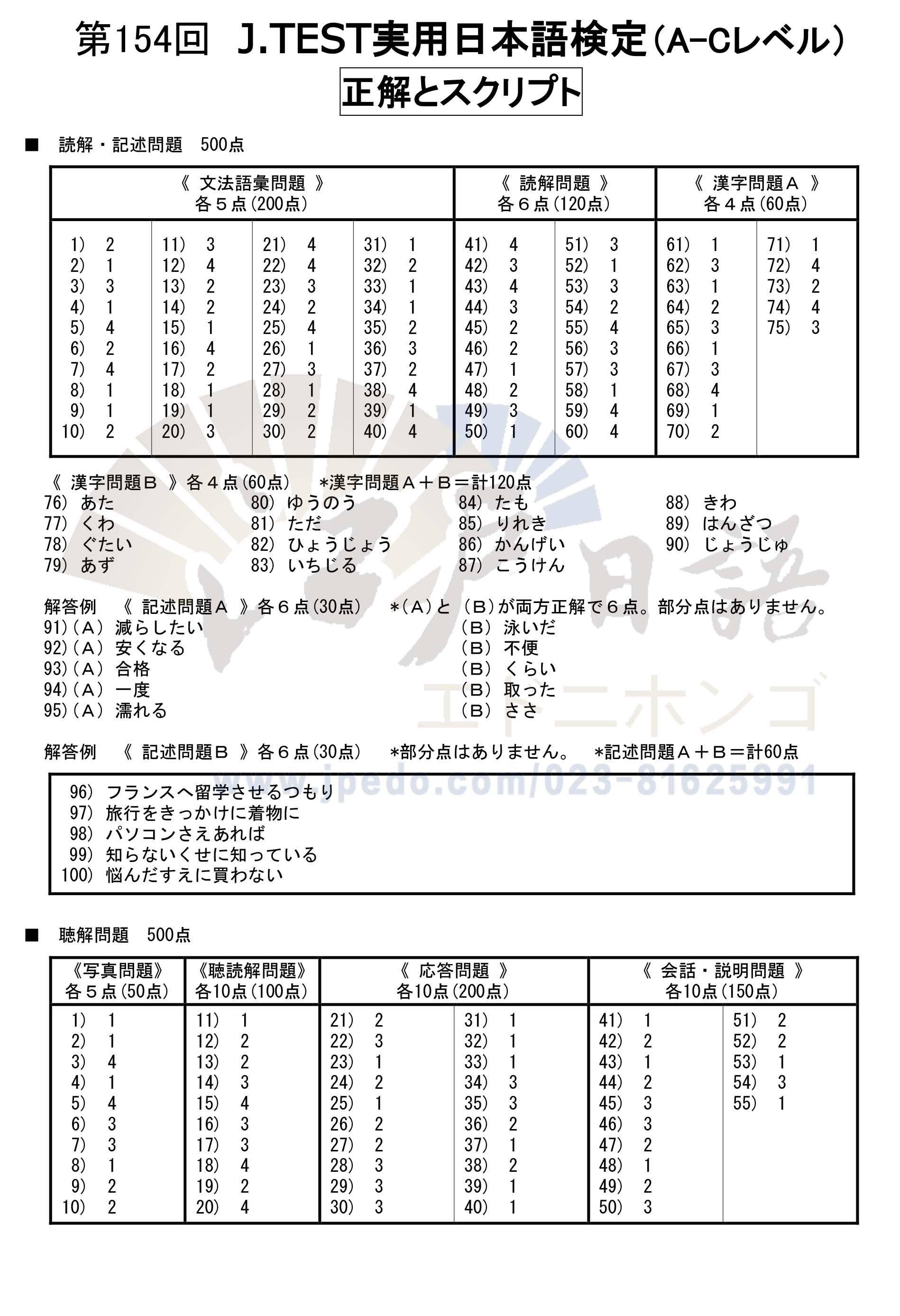 第154回日语J.test考试答案及真题,请参考高考日语老师公布的历年真题答案和音频。