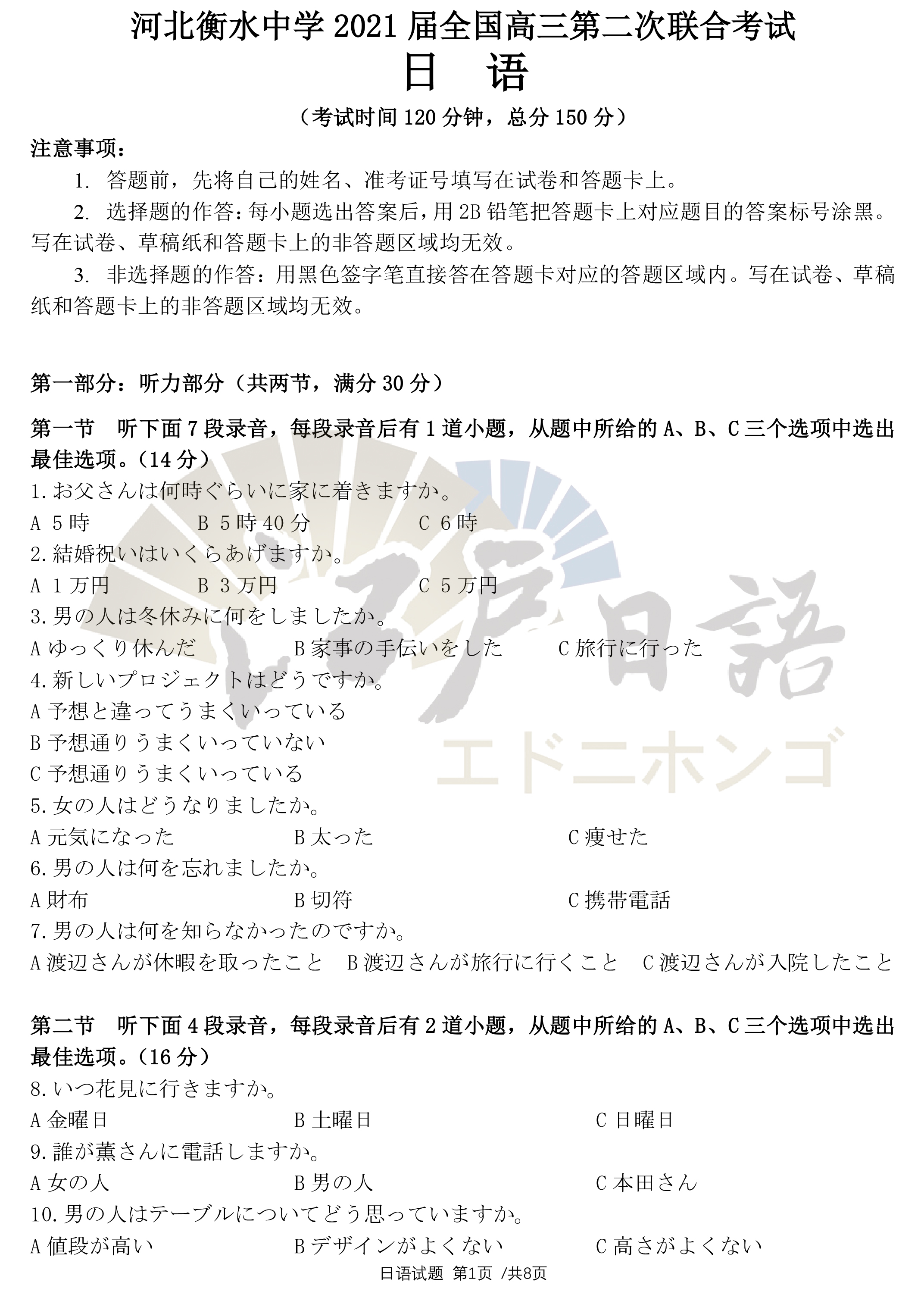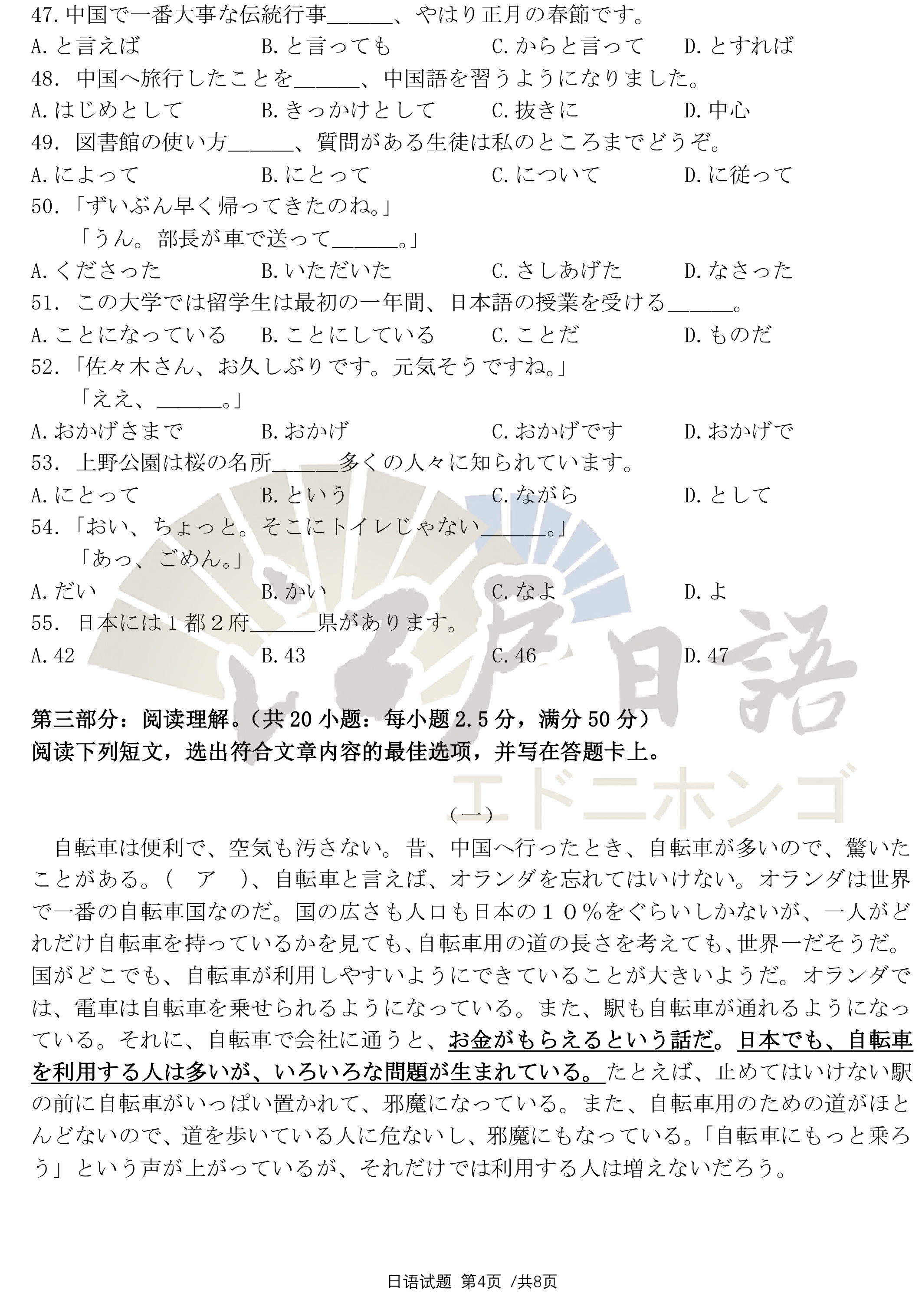 日 语 真 题