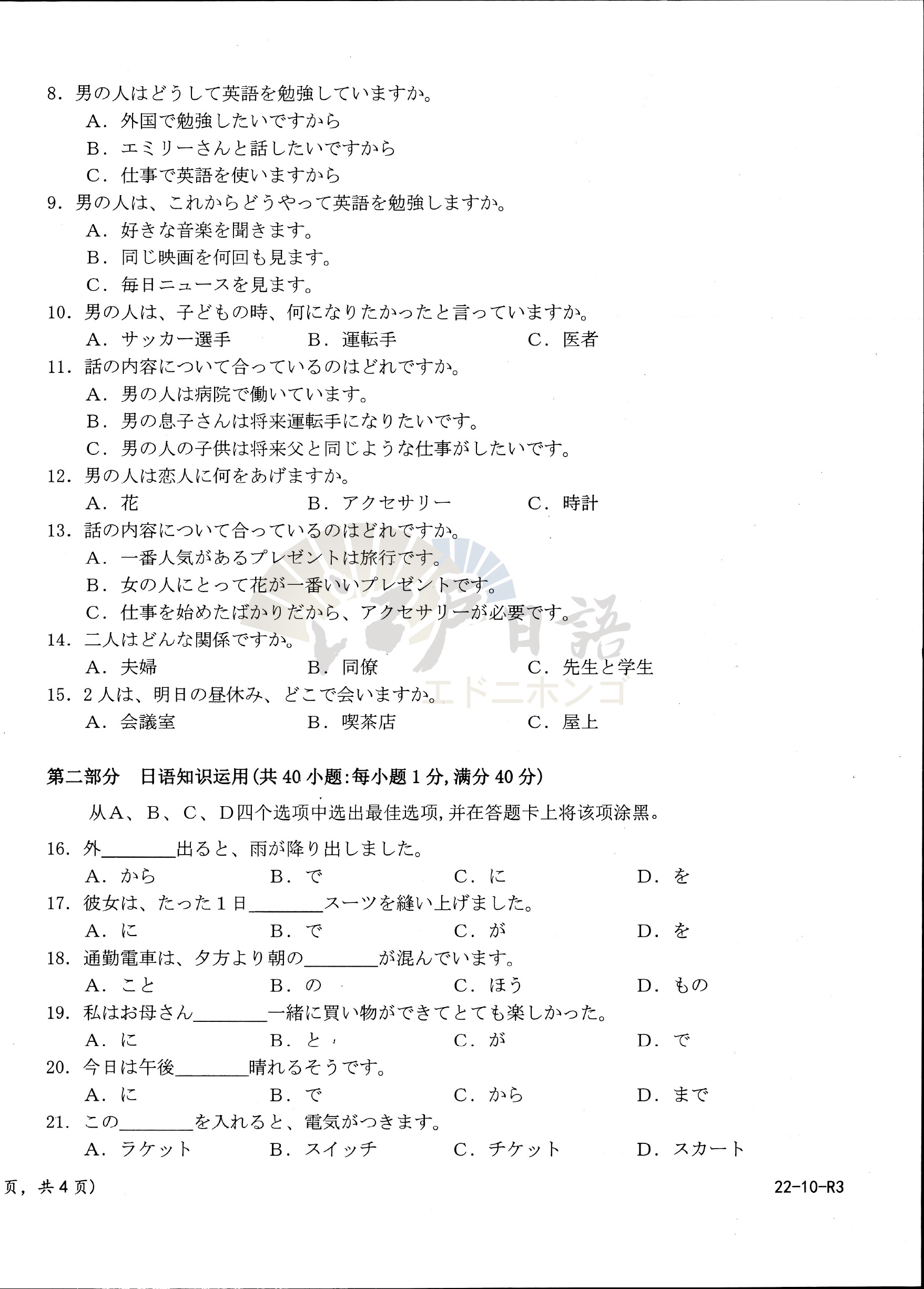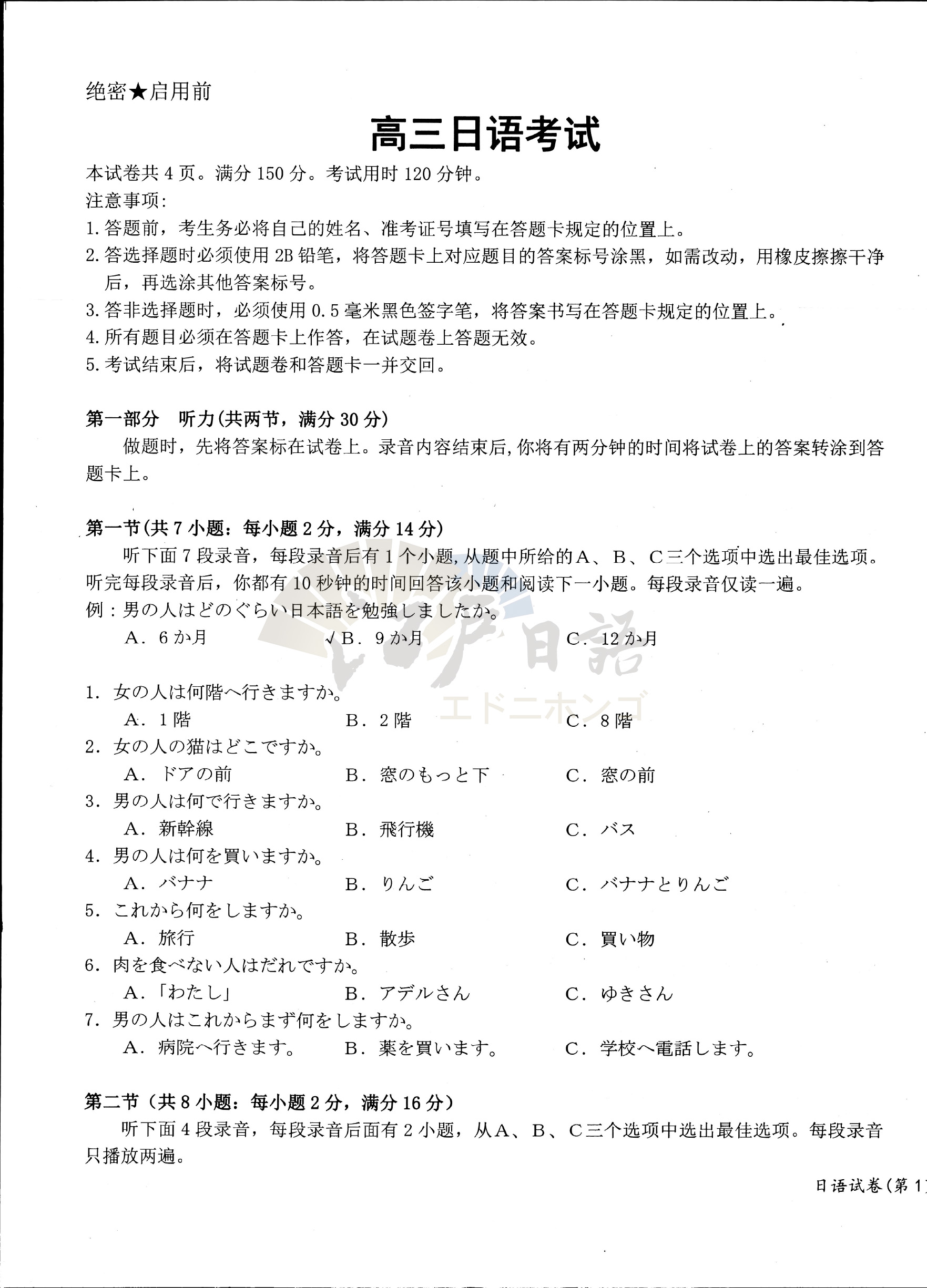 点击查看:2021年金太阳R3高三日语联考试卷听力原文及答案解析