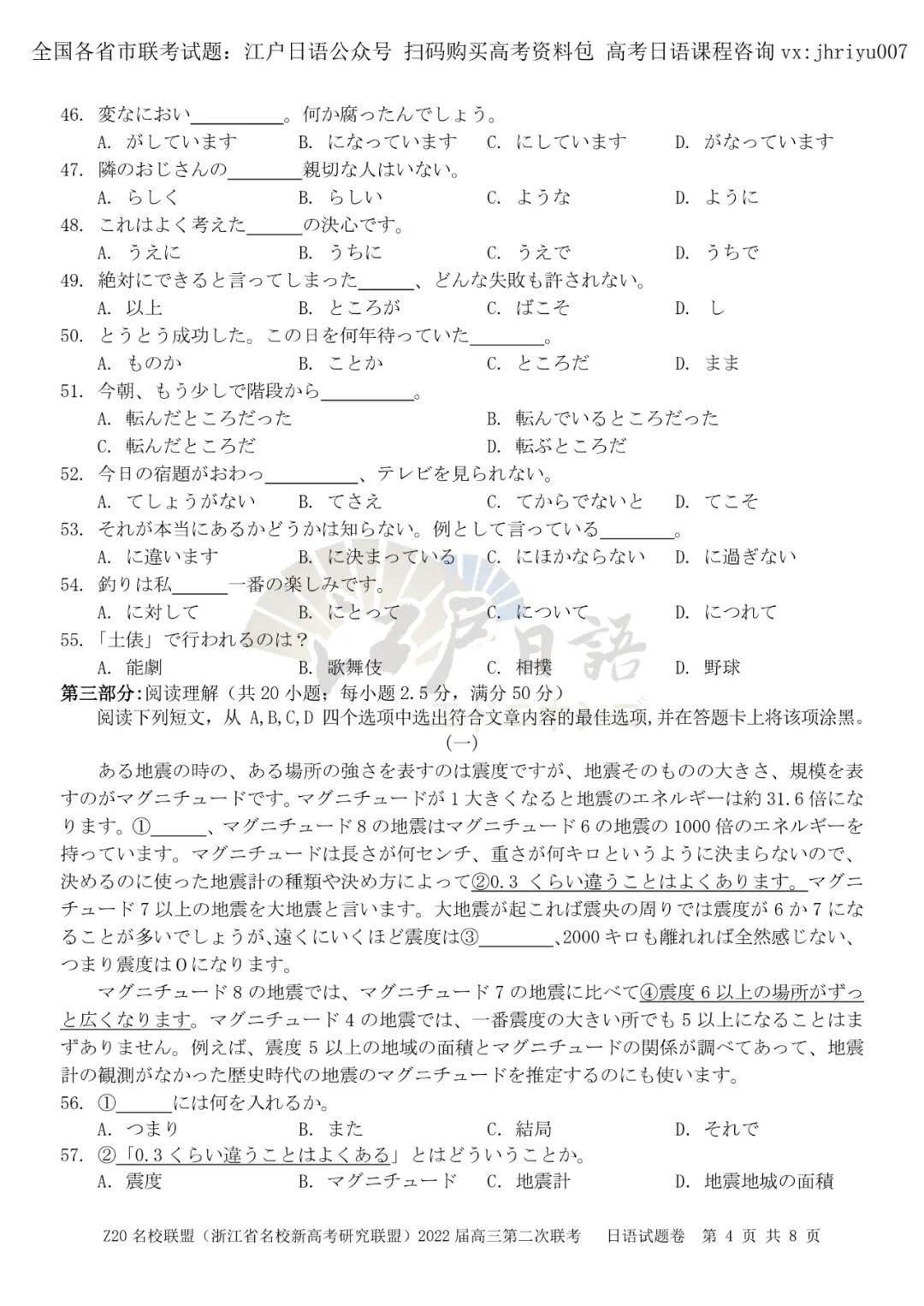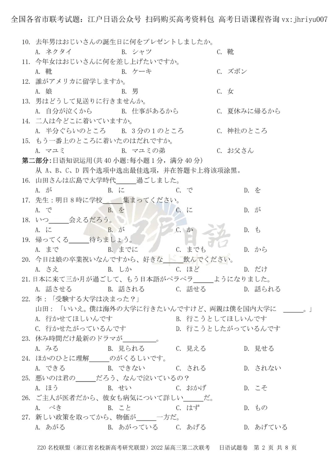 #浙江Z20名校联盟2022届高三第二次联考日语试卷#