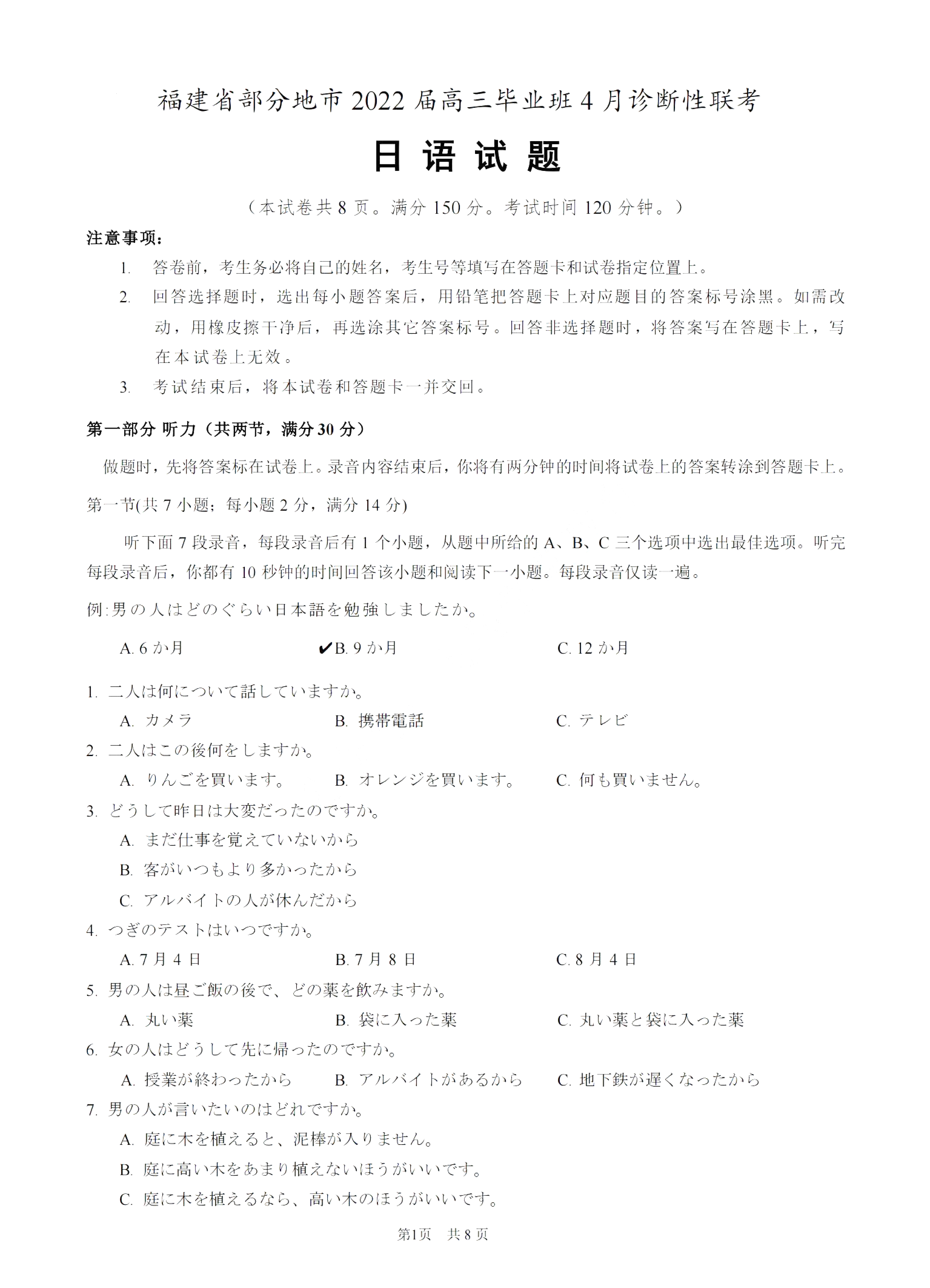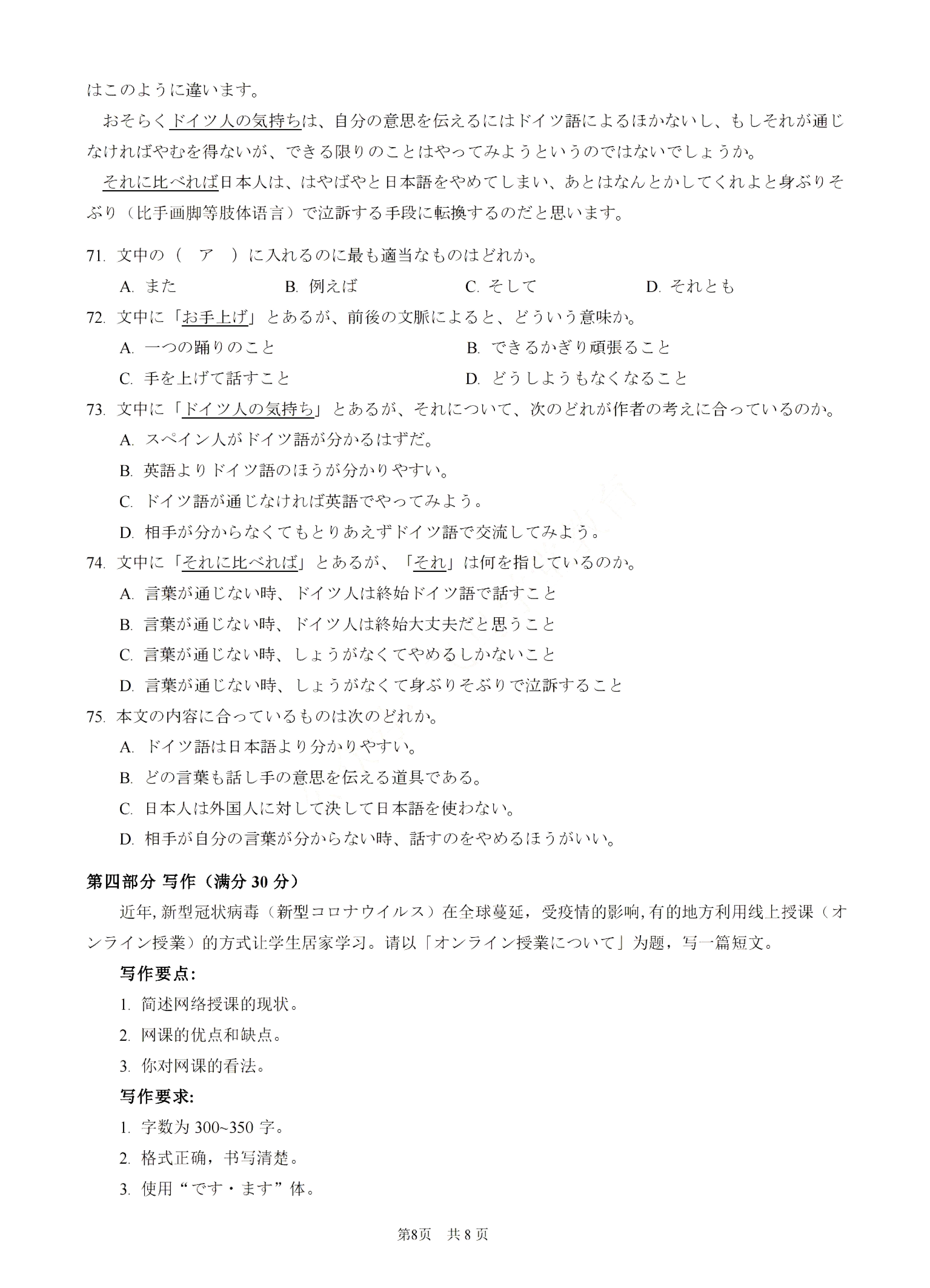 也可关注重庆江户日语微信公众号(cqjhry)回复“2021模拟题或2022模拟题”