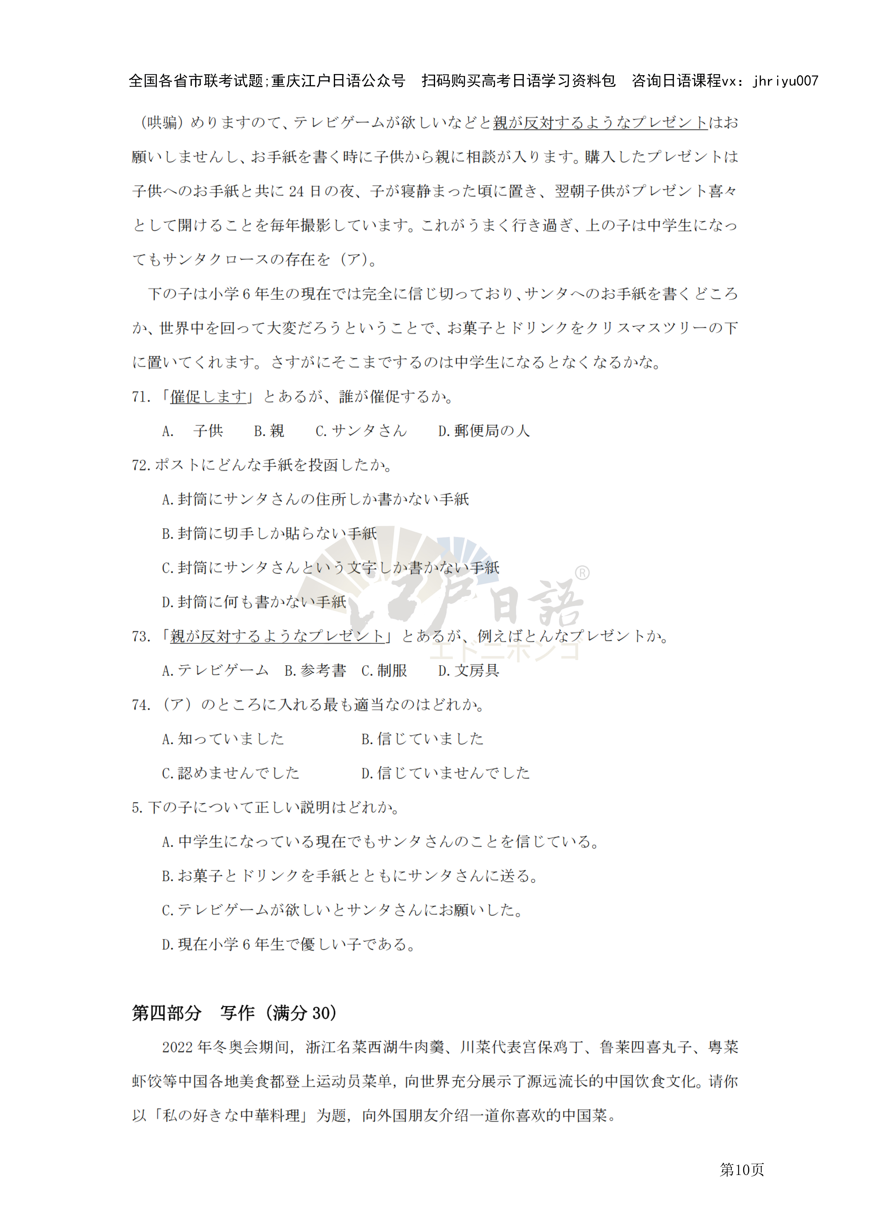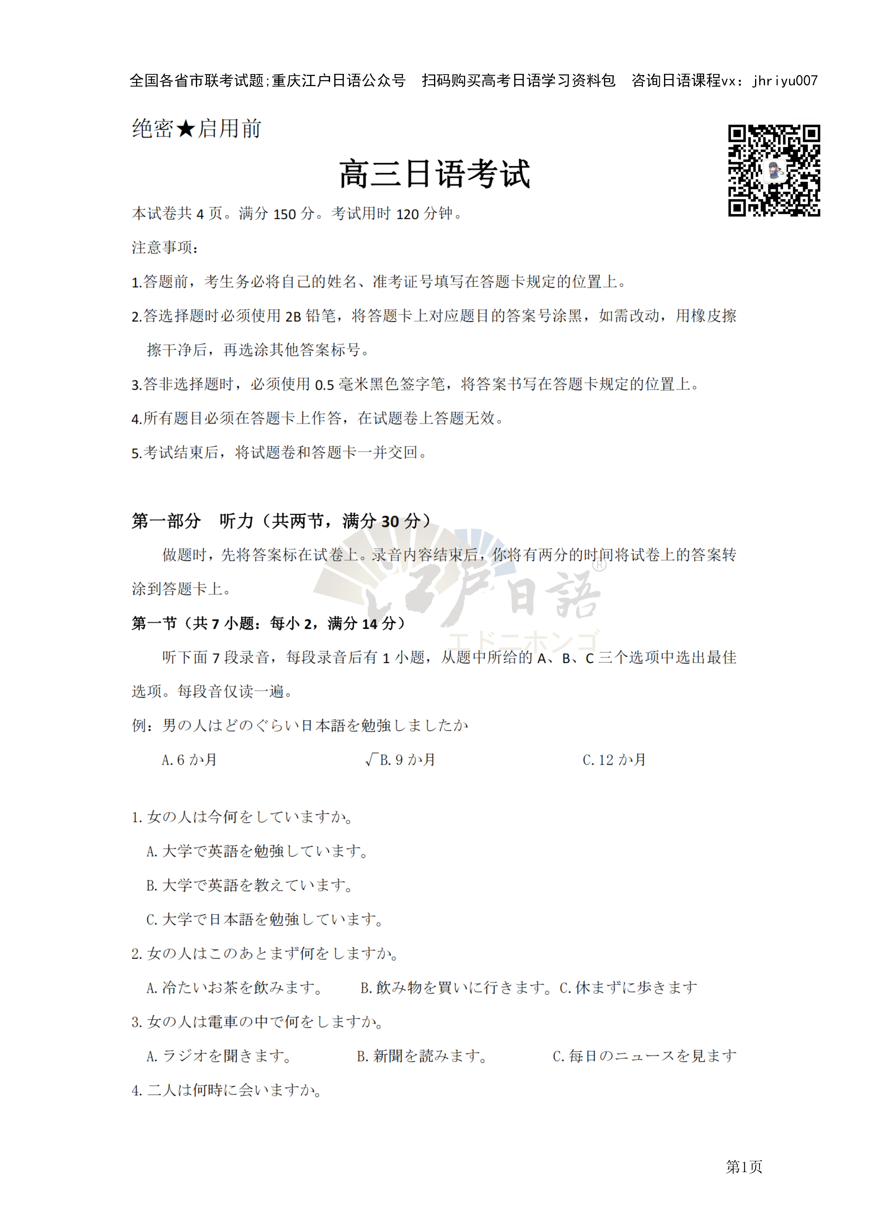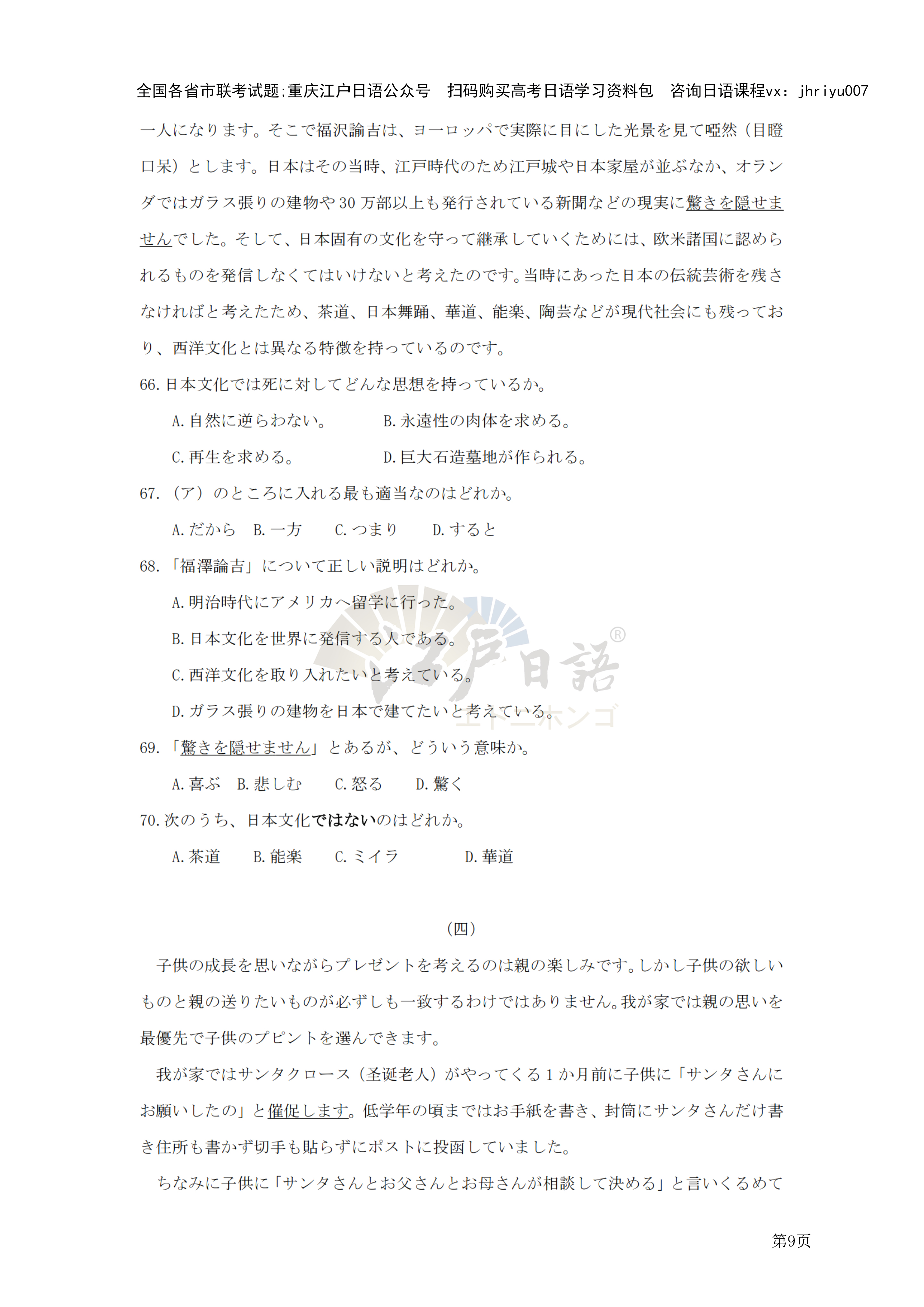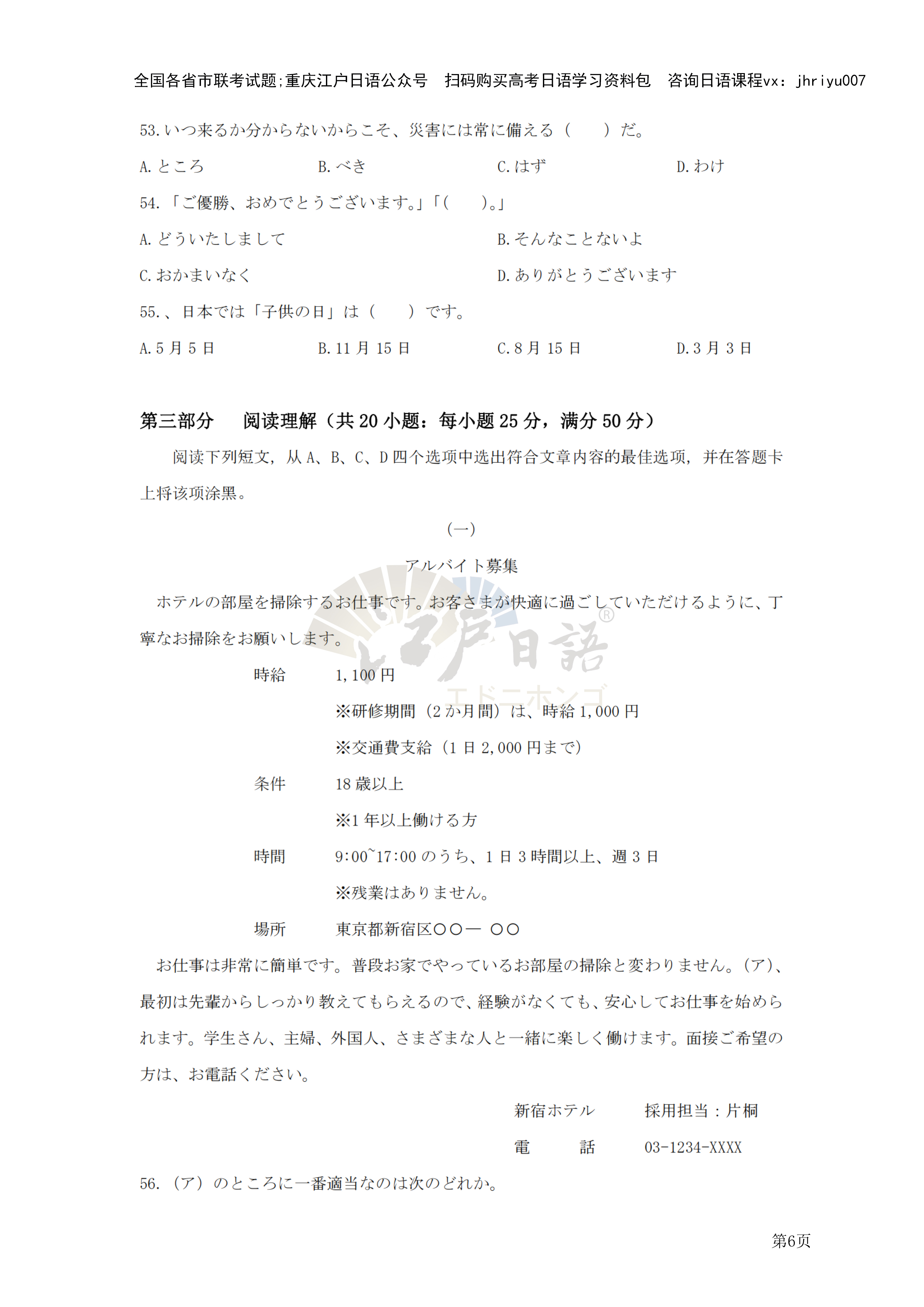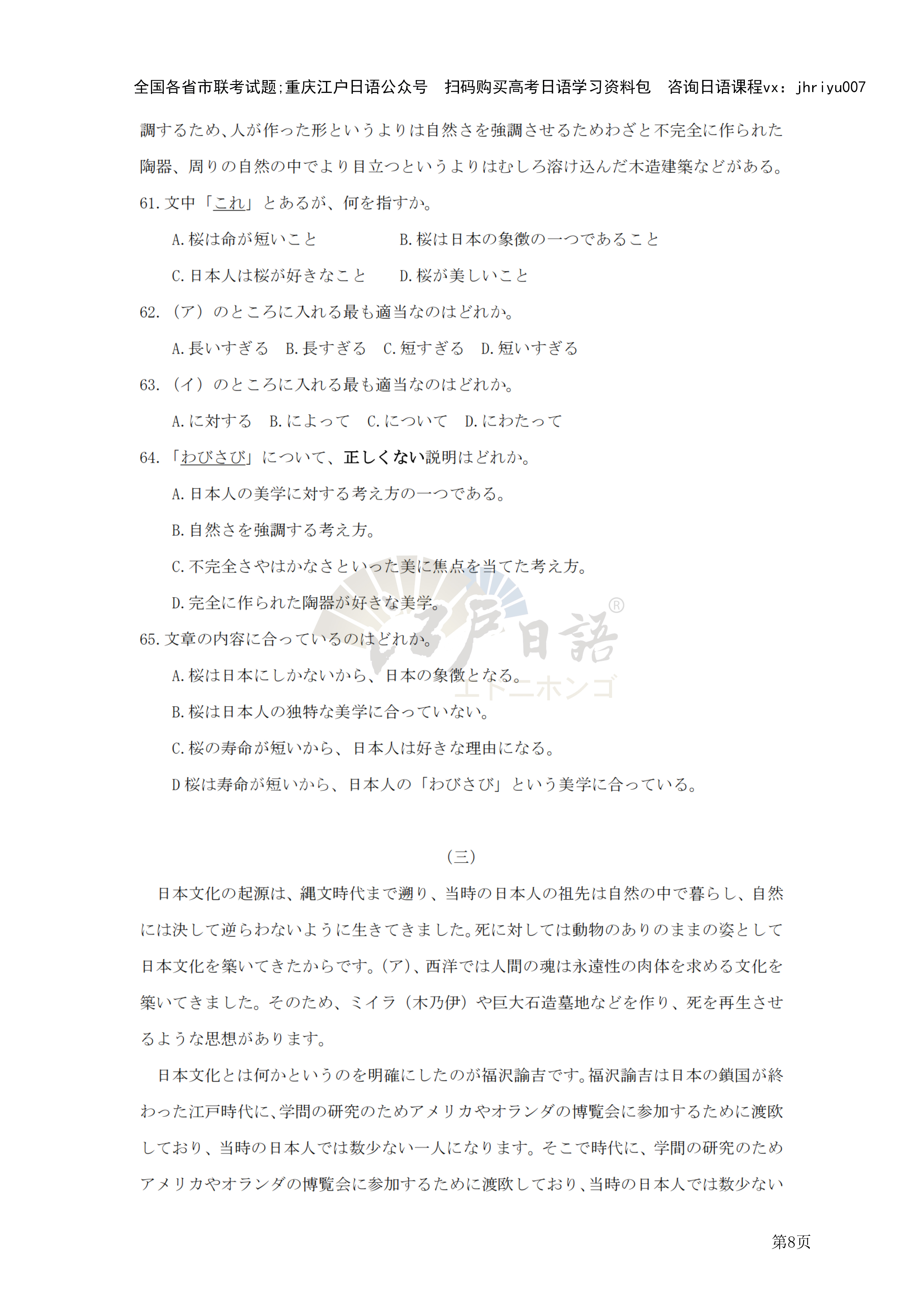 2、关注重庆江户日语微信公众号(cqjhry),保存图片打开淘宝扫一扫即可购买一份完整试题(电子档)。