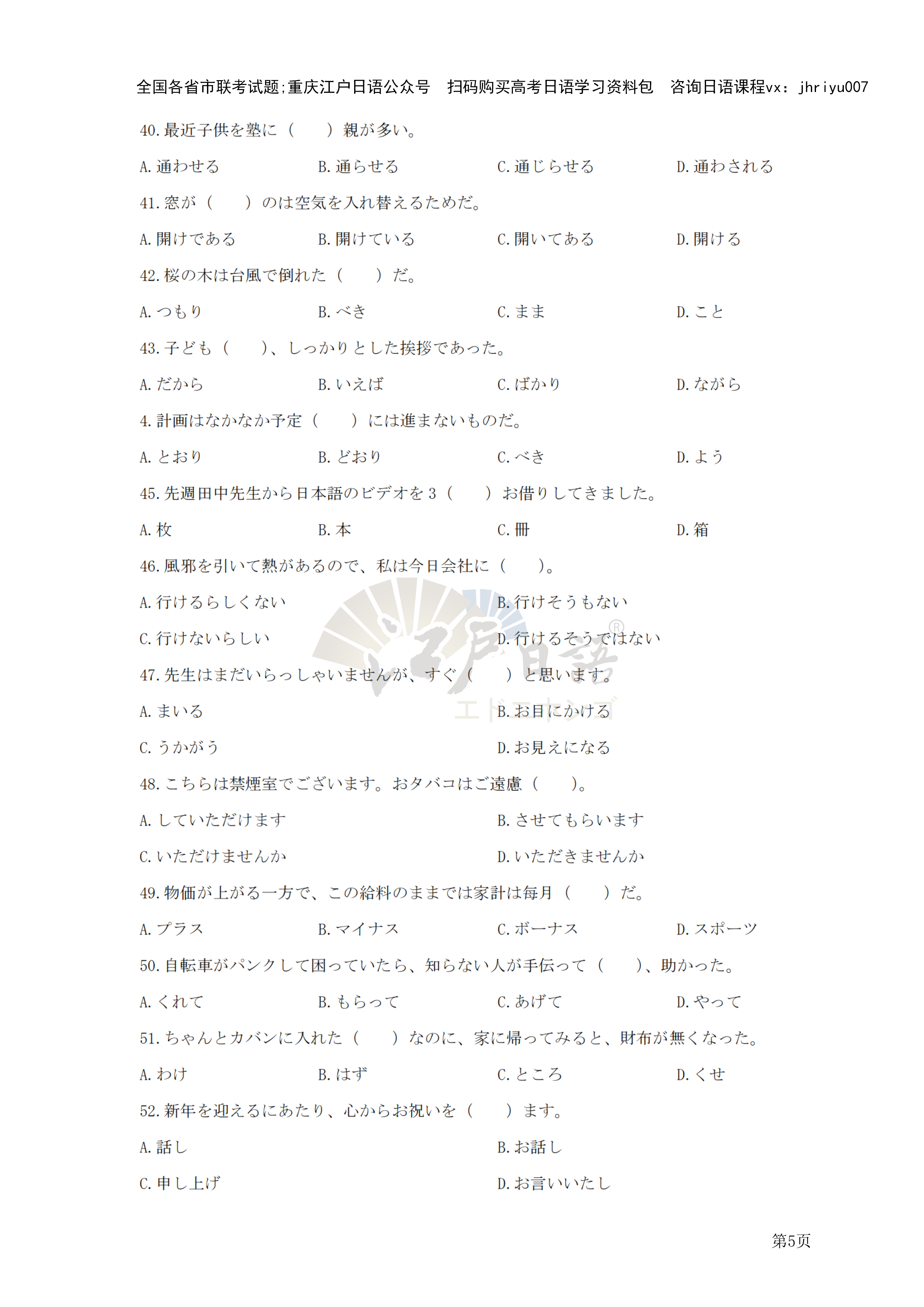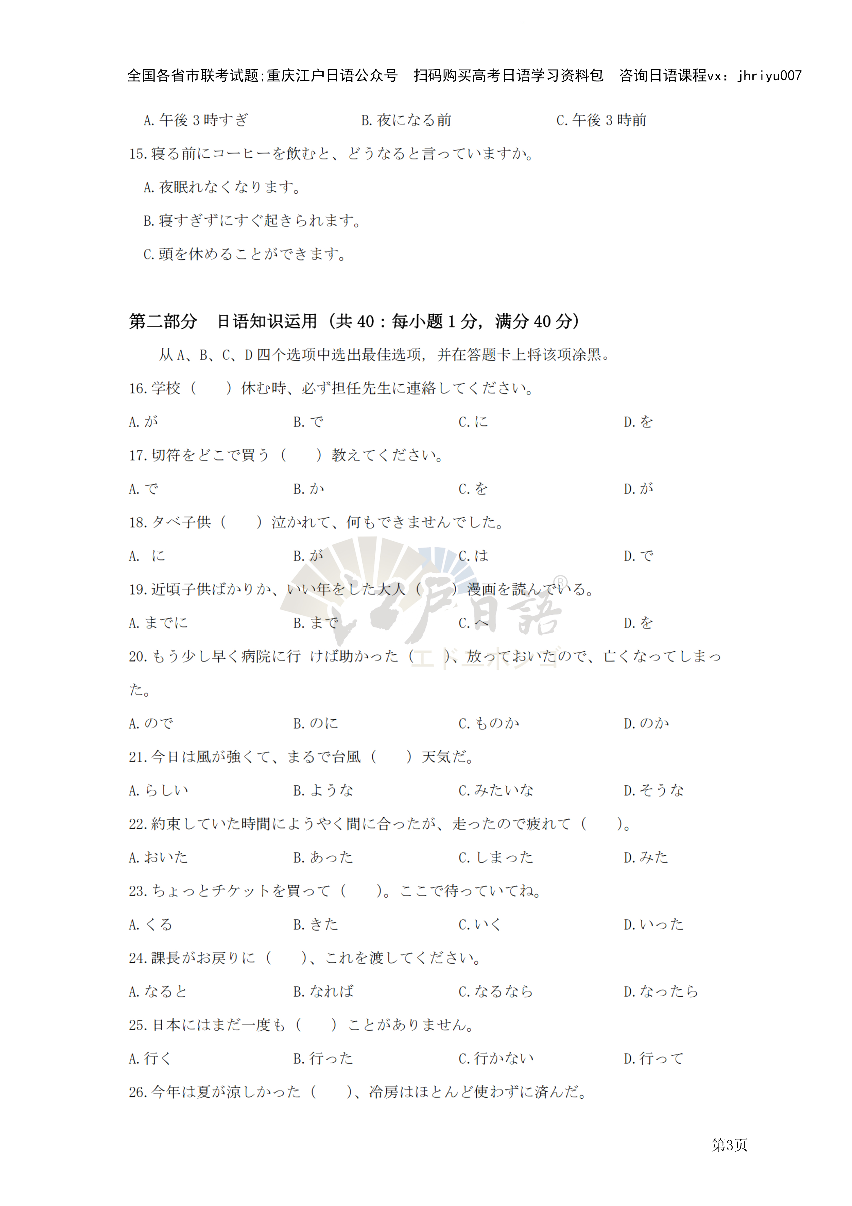 1、点击下方购买高考日语学习资料包图片,即可获取高考日语全套学习试题资料及免费更新试题。