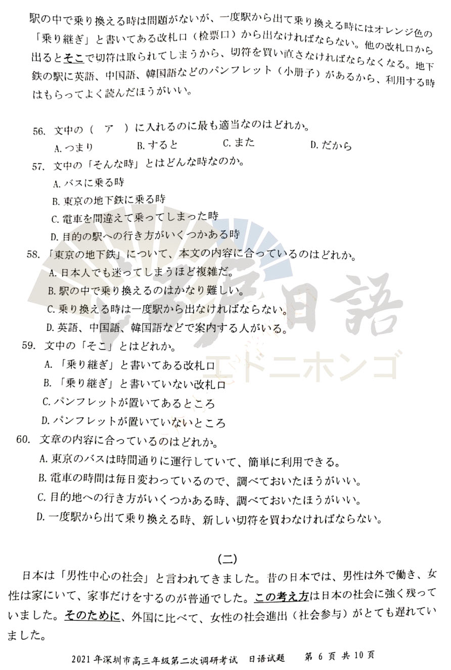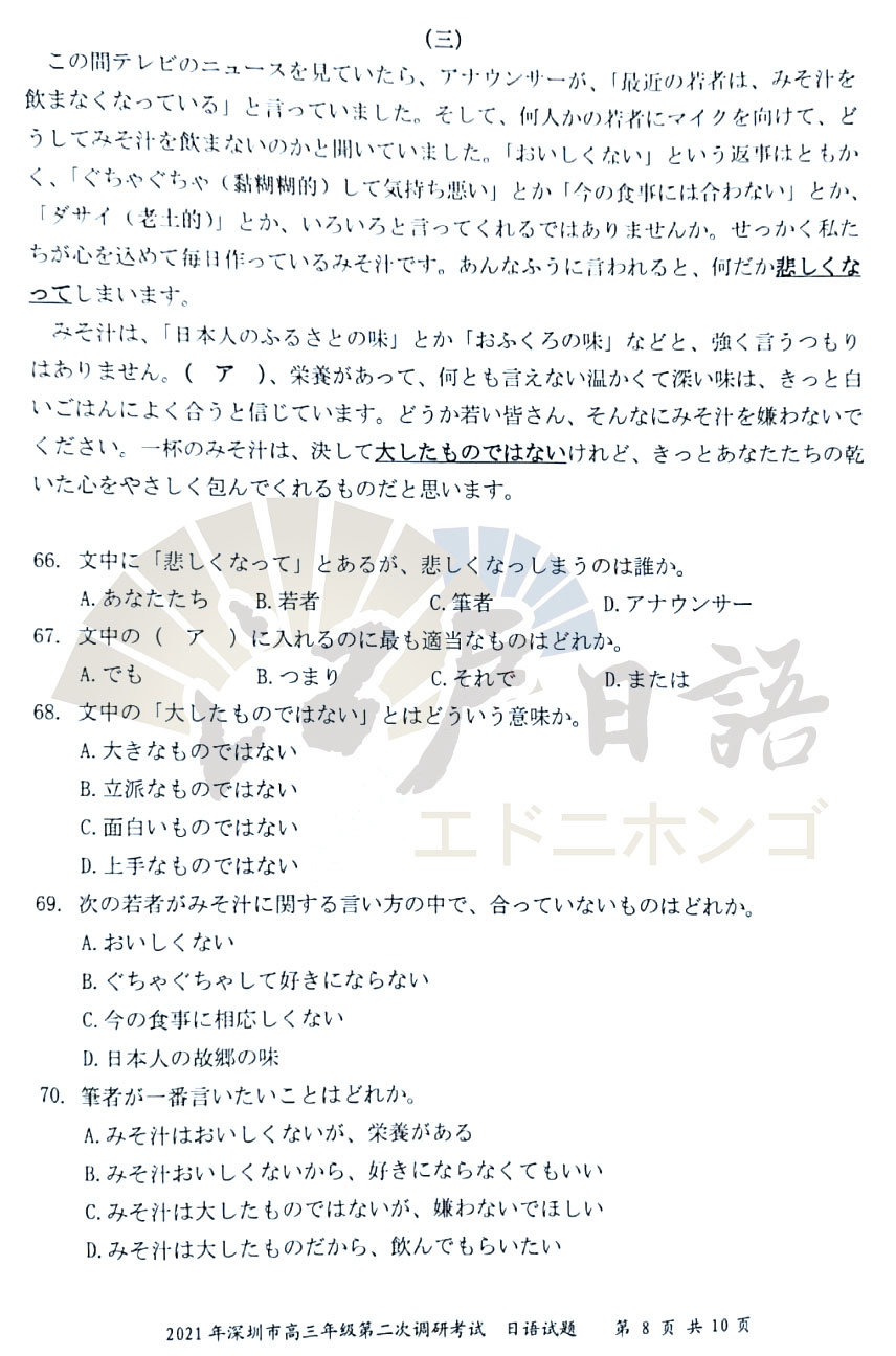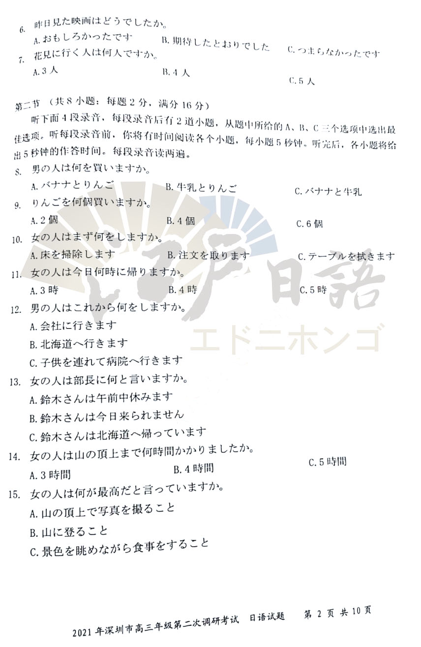 关注重庆江户日语微信公众号(cqjhry),回复“深圳二模”获取答案及听力音频!