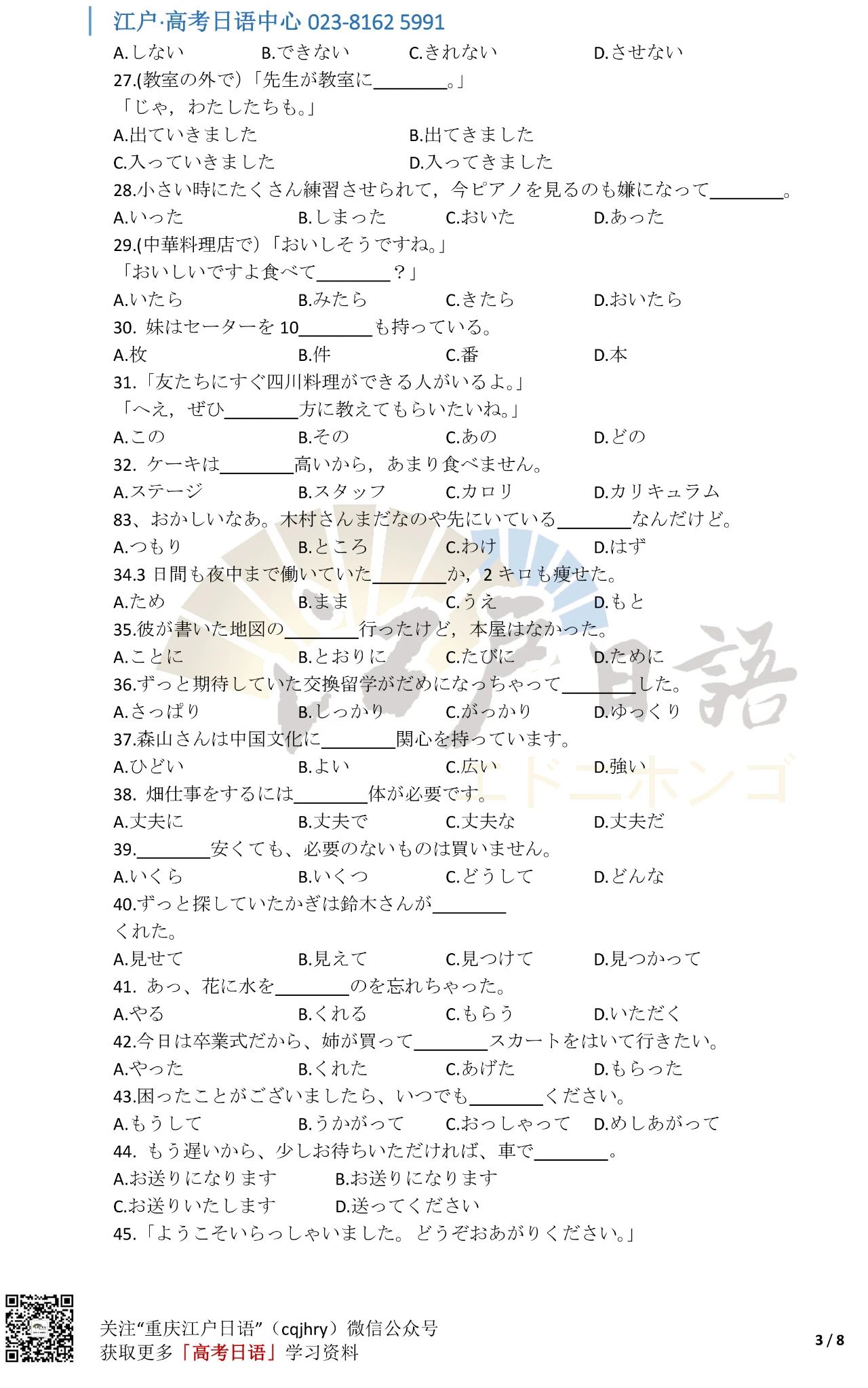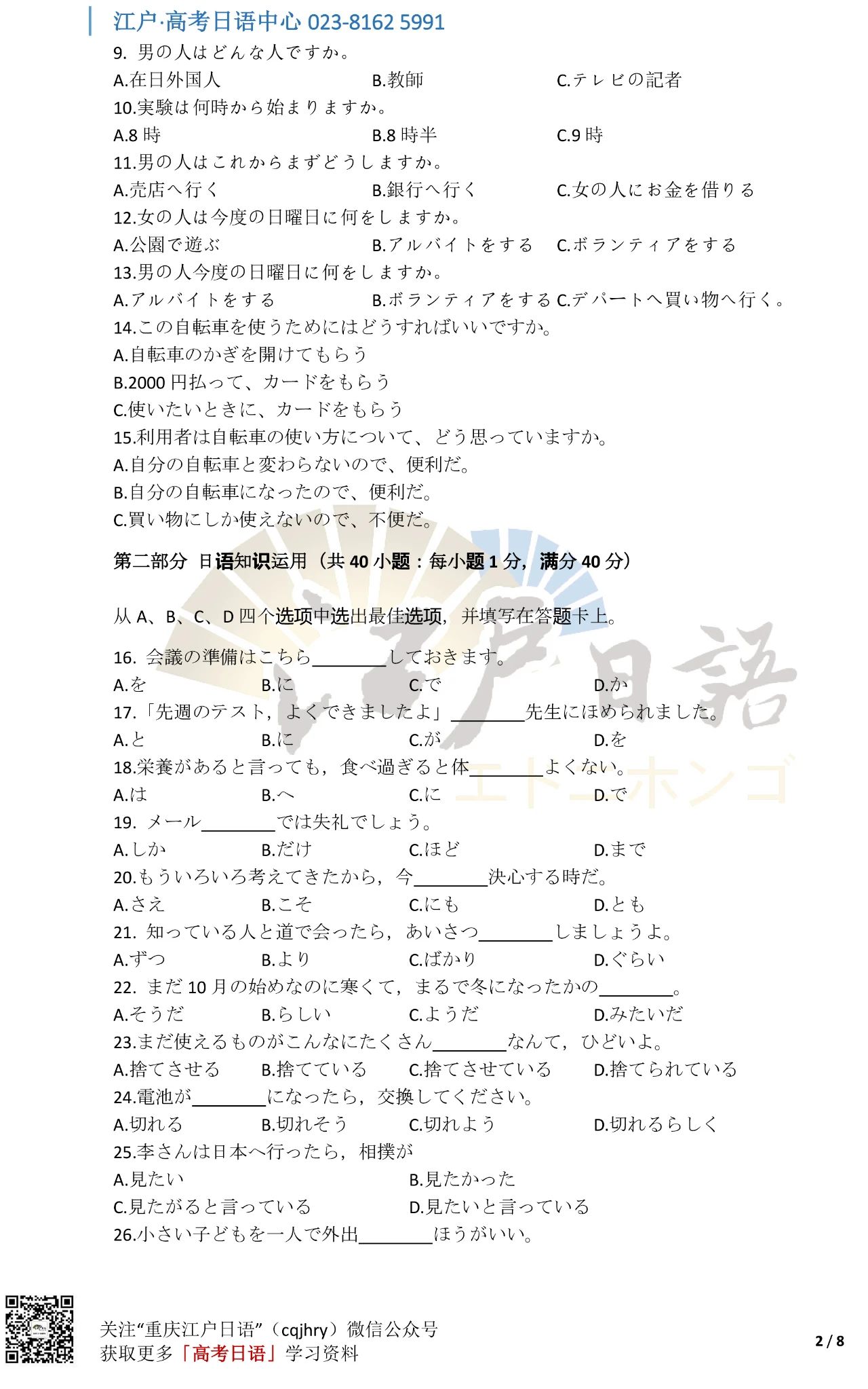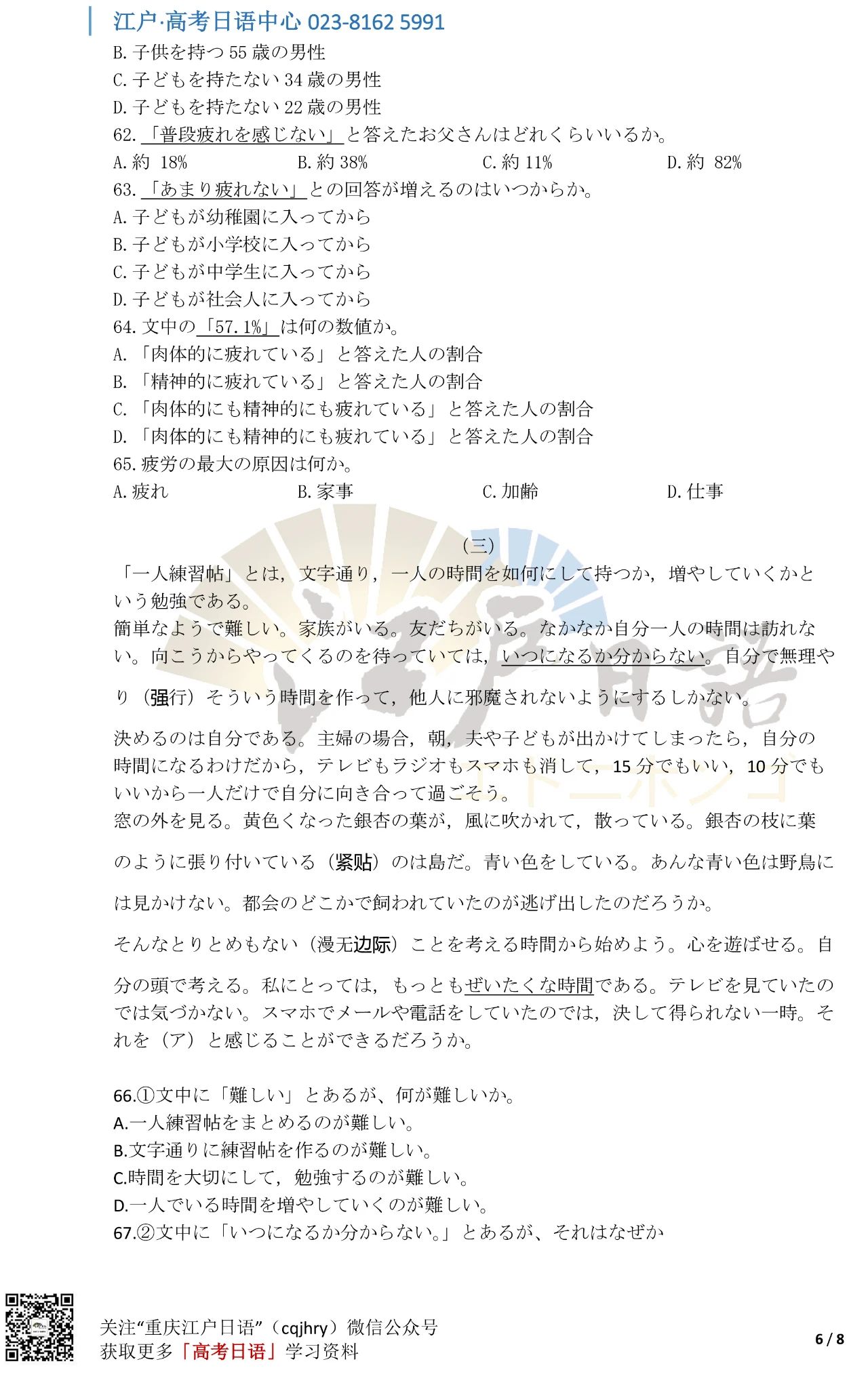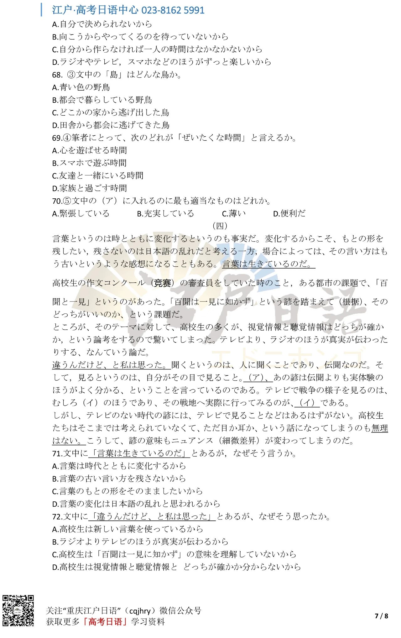 关注重庆江户日语微信公众号(cqjhry)或扫描上方二维码回复“2021”即可获取真题答案哦。