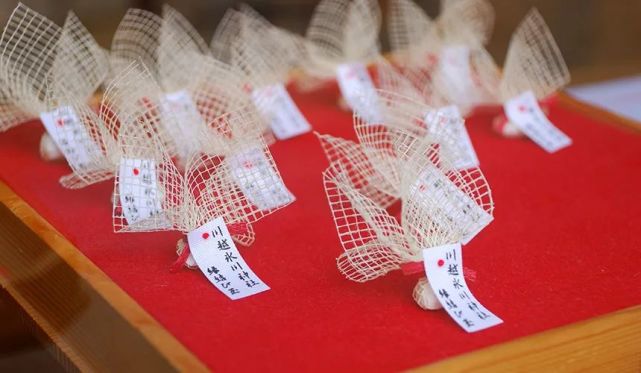 冰川神社免费的姻缘石(结缘玉)每日限量20个,一早由巫女在神社内捡石头加持祈求后,用白网包裹,就成了姻缘石,早上八点开始发放
