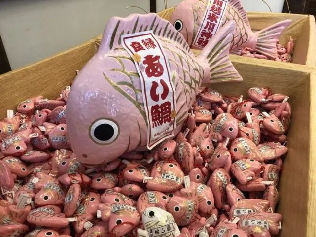 用鱼竿钓来的鲷鱼神签很受欢迎!祈求良缘的恋爱签“爱鲷神签”是粉红色的鲤鱼形状。上面还写着将要遇到的有良缘的人的特征等哦~
