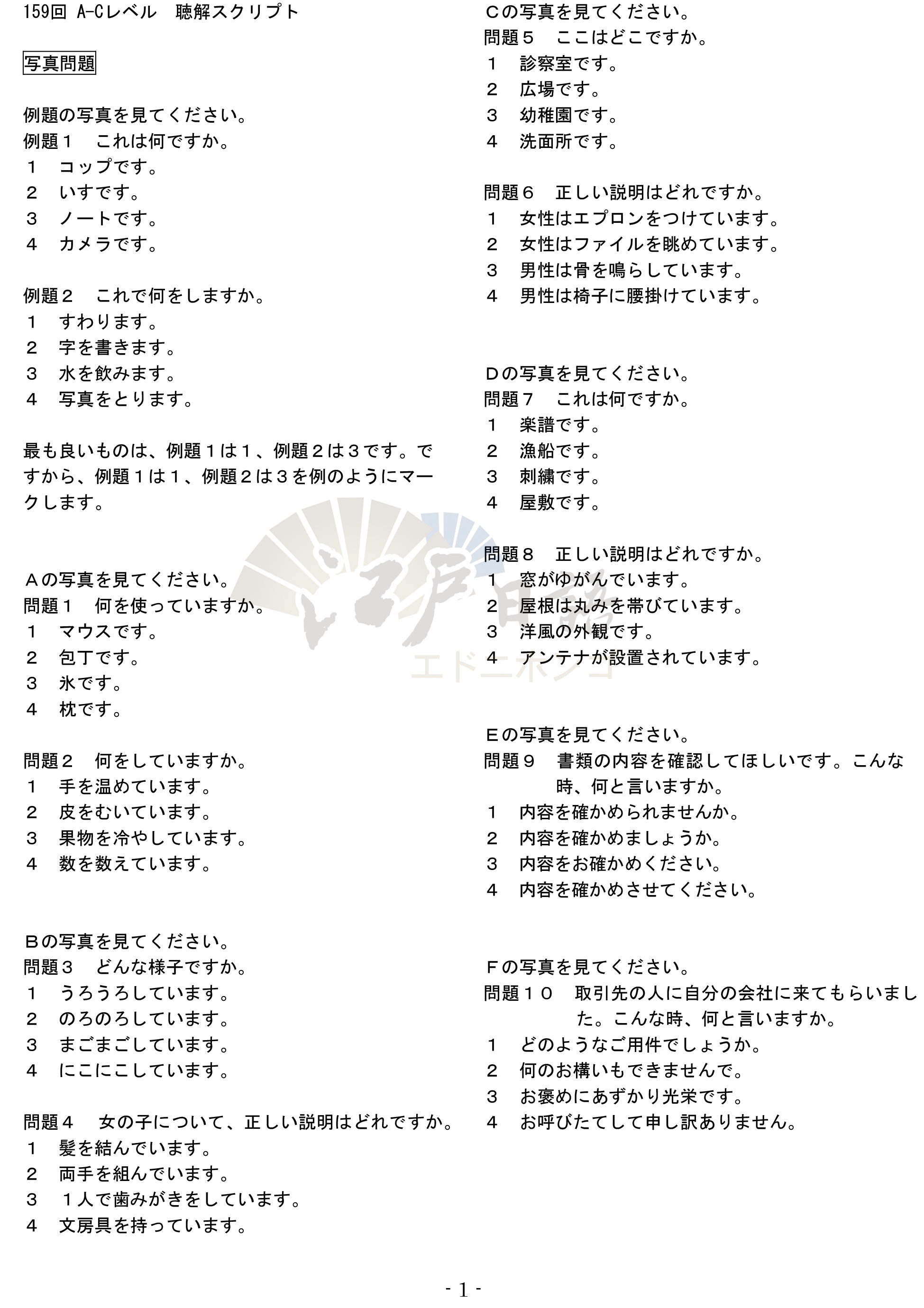 关注重庆江户日语微信公众号(cqjhry)回复“159”即可获取日语听力音频及答案。