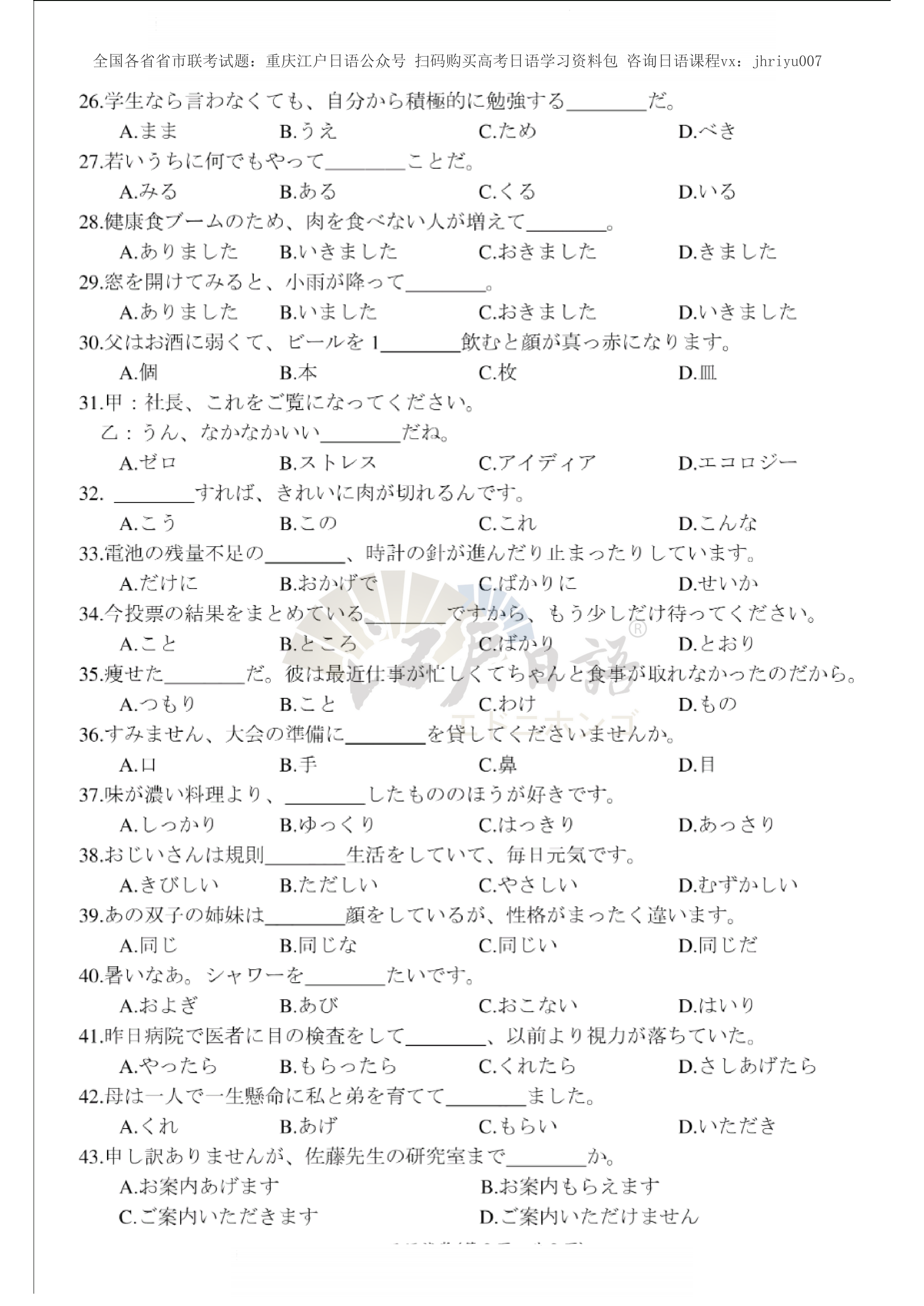 1、点击下方购买高考日语学习资料包图片,即可获取高考日语全套学习试题资料及免费更新试题。
